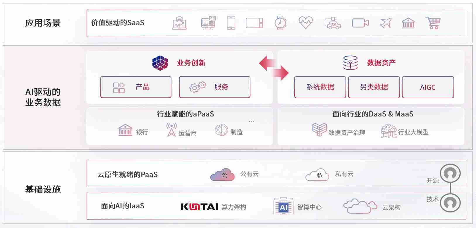 数字时代,,围绕企业数字化转型的关键要素,,,Z6尊龙时凯数码开创性的提出数云融合战略和技术体系框架,,着力在云原生、、、、数字原生、、AI原生和信创产业上架构产品和服务能力,,,为处在不同数字化转型阶段的快消零售、、汽车、、、金融、、医疗、、、、政企、、、教育、、运营商等行业客户提供泛在的敏捷IT能力和融合的数据驱动能力,,,,构建跨界融合创新的数字业务场景和新业务模式,,,助力企业级客户建立面向未来的核心能力和竞争优势,,,,全面推动社会的数字化、、智能化转型升级。。。
